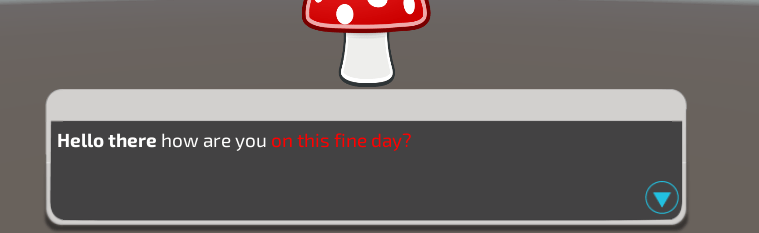 Looking into Fungus’s documentation, I can change the font’s size and colour and cause the textbox to shake, this is shown below in fig 1.