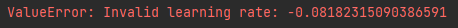 Figure 9: Max Oates. 2022. example of learning rate not accepting negative number.