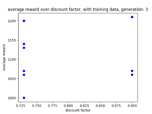 Two problems I did have with using GAs was that it could take a while for the AI to create generations as well as train and test each one. However, this was likely due to the AI not having any training data or the reward threshold had not been set up to keep track of the most common reward being returned. The second problem I had faced, was the potential parameters could be quite limited and the results look quite similar to one another despite the mutations being applied. This may have been due to the range of mutations that could be applied or there not being enough example generations to use at the start of the system.